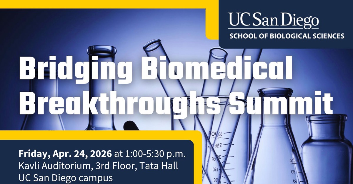 Join us on Friday, Apr. 24, 2026 at 1:00-5:30 p.m in Kavli Auditorium on the 3rd Floor of Tata Hall for this premier biannual event hosted by the UC San Diego School of Biological Sciences in partnership with the Office of Innovation and Commercialization, Department of Neurosciences, and Department of Neurobiology. This dynamic gathering unites faculty innovators, investors, industry leaders, postdocs, and students to explore how cutting-edge research drives real-world biomedical impact. Featuring thought-provoking discussions with leading venture capitalists and CEOs, and presentations from faculty entrepreneurs advancing innovations in neurosciences and neurobiology, the summit fosters collaboration, accelerates discovery, and builds bridges between academia and industry to tackle today’s greatest health challenges.